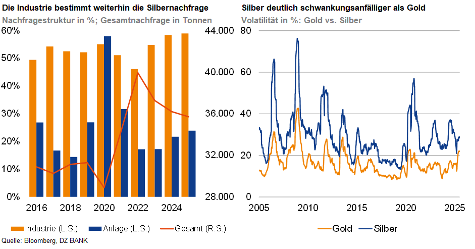 Silber vereint zwei Eigenschaften, die es besonders machen. Es ist sowohl monetärer Sachwert als auch strategischer Industriemetallrohstoff. Diese Kombination führt zwangsläufig zu stärkeren Schwankungen als bei anderen Edelmetallen.